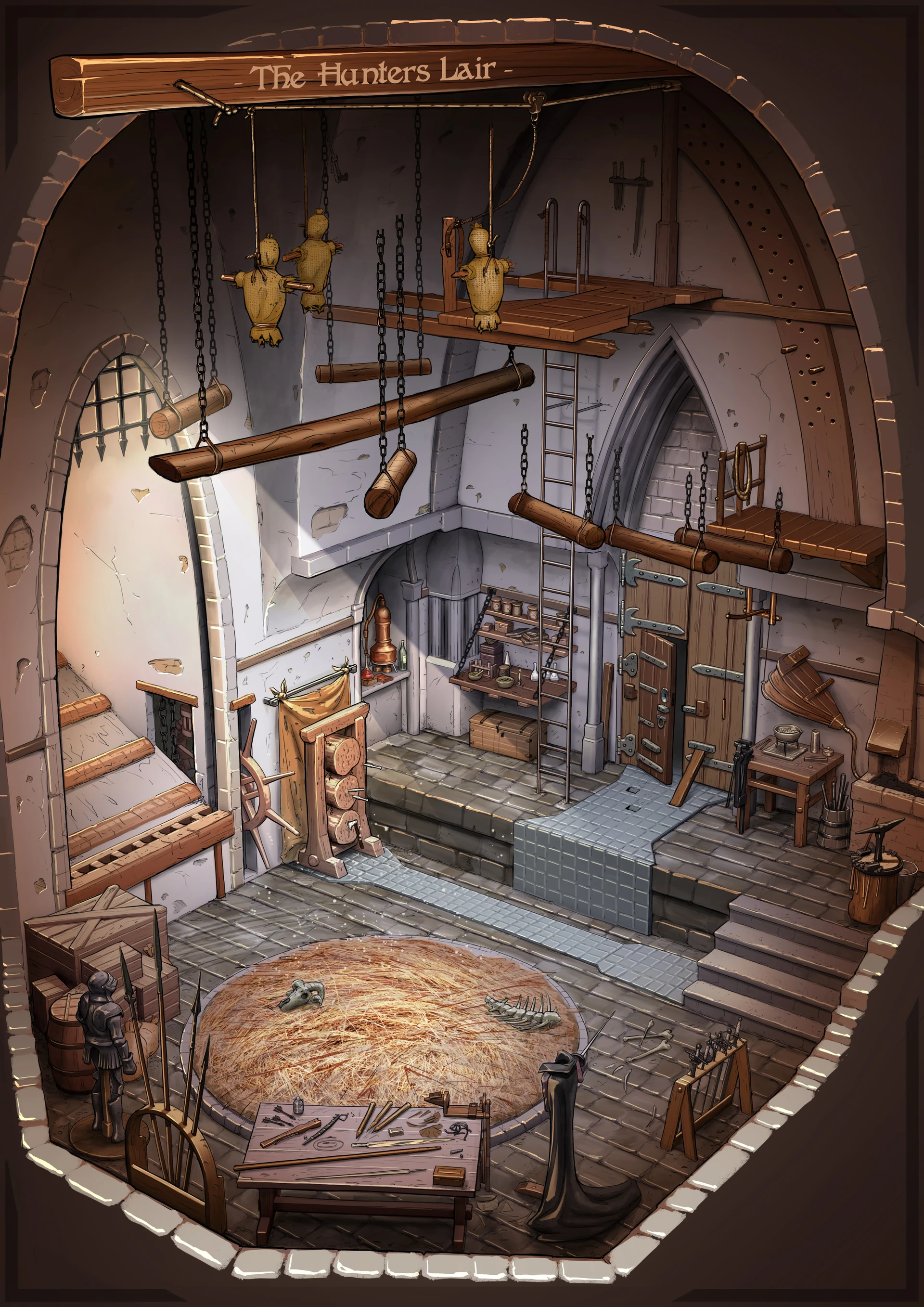 The hunter, his quarters, secret lair, mount, and nemesis.